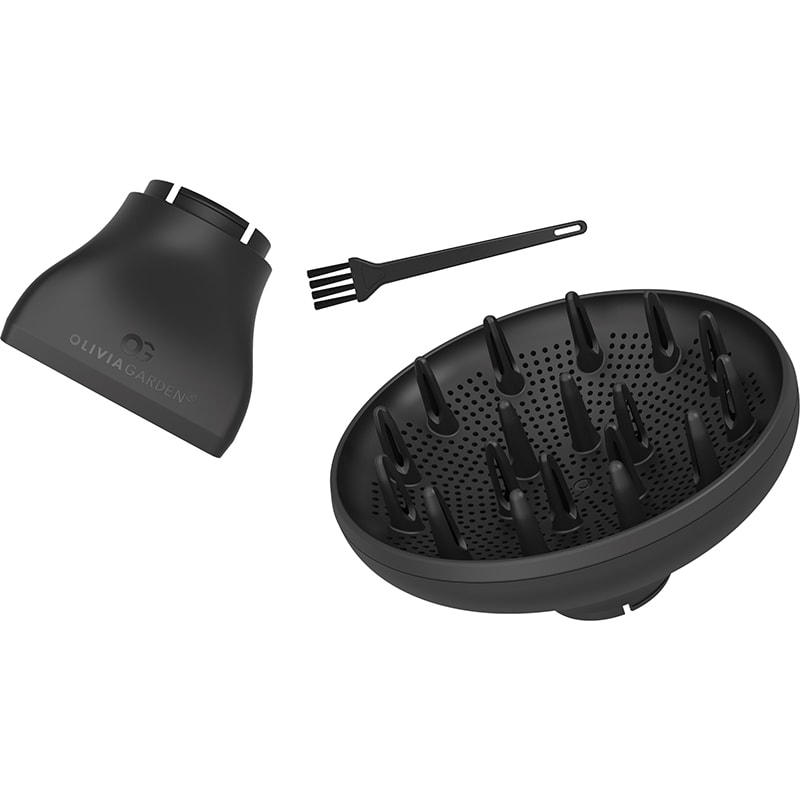 Fitted with accessoriesConcentrator nozzle for powerful, controlled & even airflowDiffuser with 13.3cm diameter to gently dry while creating shiny curls or beautiful waves without heat damage or frizzCleaning brush to clean the internal filter |