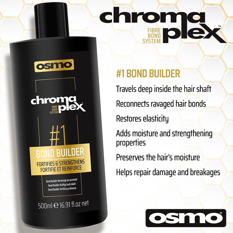 Chromaplex includes OSMO’s famous Fibre Bond Technology. This strengthens hair from the inside out. It penetrates the hair shaft and repairs bonds, preventing breakage and improving hair condition.