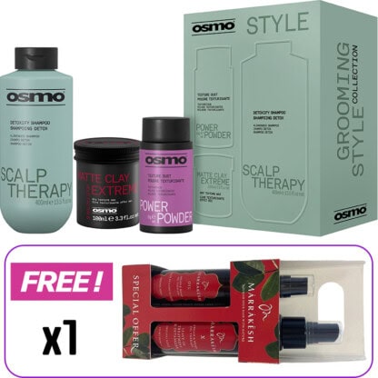 For a limited time, receive a Marrakesh Oil Hair Styling Elixir & X Leave-In Caddy Set (2 pieces) FREE OF CHARGE when you purchase this OSMO gift pack. Simply add the gift pack to your cart and your shampoo will automatically be added to your invoice.