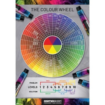 Colour wheel poster branded with an OSMO IKON theme. Wheel features colours of OSMO IKON to assist colourists during services.