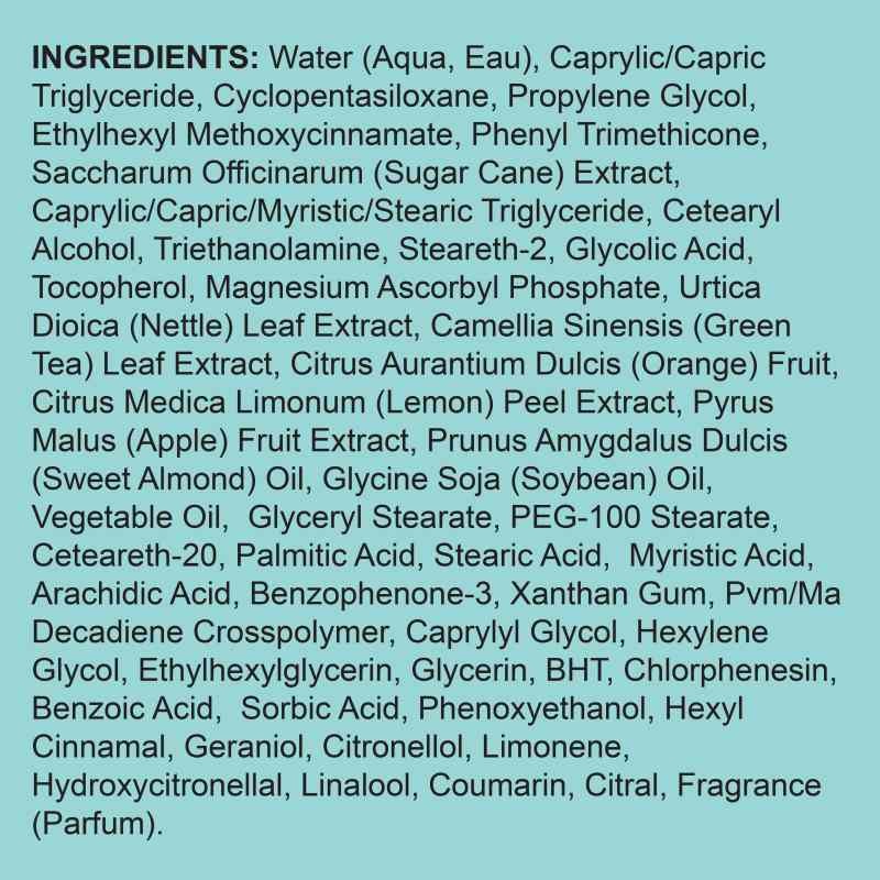 Wrinkles and fine lines appear smoother as glycolic acid helps to exfoliate skin to make it appear firmer and more radiant. Vitamin C also helps to reduce the visible signs of aging. Skin appears smoother, more youthful and more evenly toned.