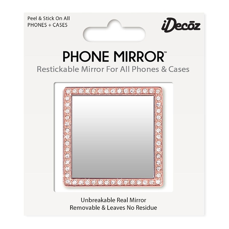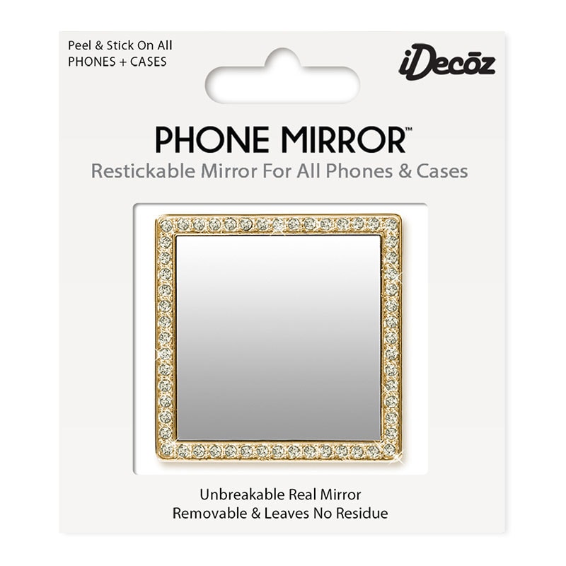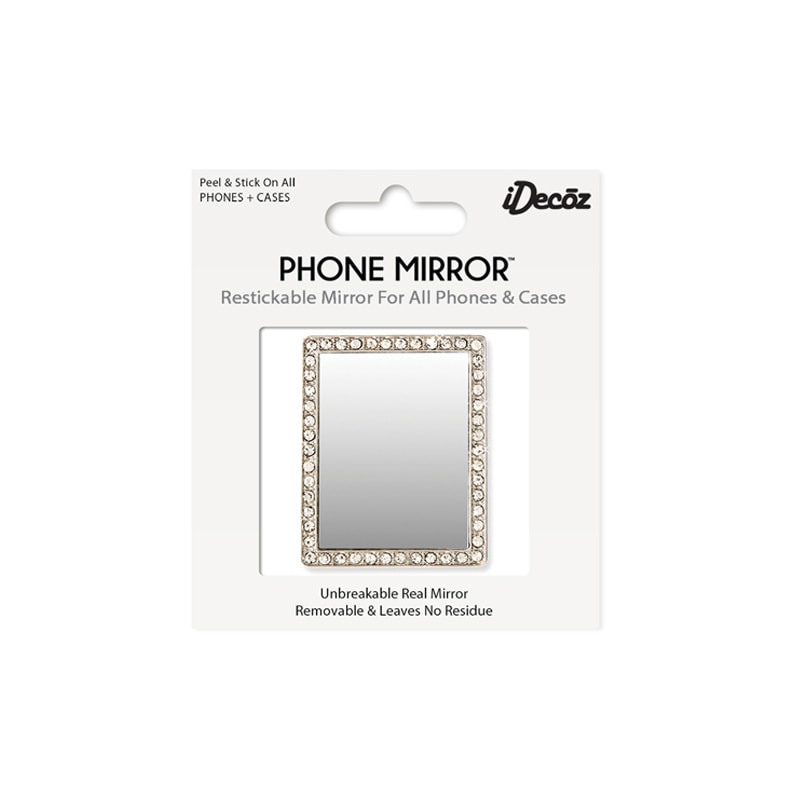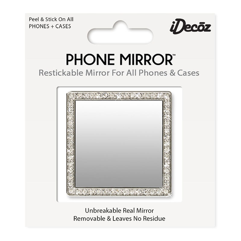 Restickable, unbreakable, real mirror that fits all phone and case varieties. Easy to attach and remove with no residue. Ideal for quick make-up touch-ups without the inconvenience of carrying a separate mirror. Coloured crystal border adds flare, uniqueness and style to all phone types.