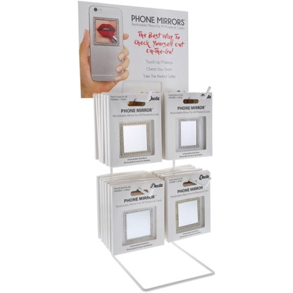 Mirrors that adhere to the back of all phones and cases. No more searching through your handbag for a mirror. The best way to check yourself out on-the-go, touch-up your make-up, check your teeth and take the perfect selfie.