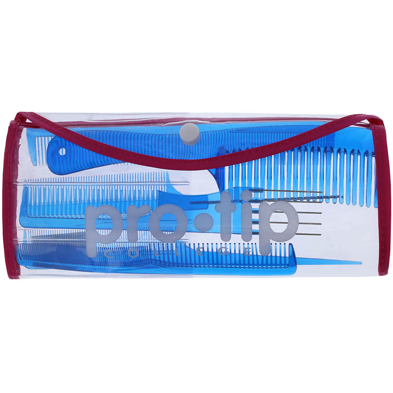 A compact kit of easily-accessible combs for a multitude of styling and cutting. Includes clear comb pouch.