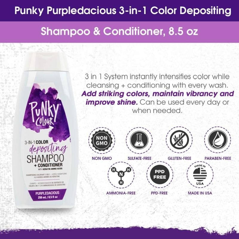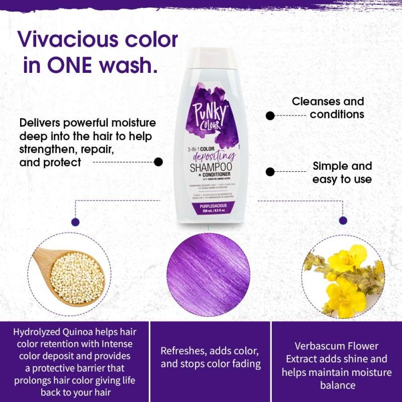 Punky Colour 3-in-1 Color Depositing Shampoo + Conditioner, Purpledacious, 250ml