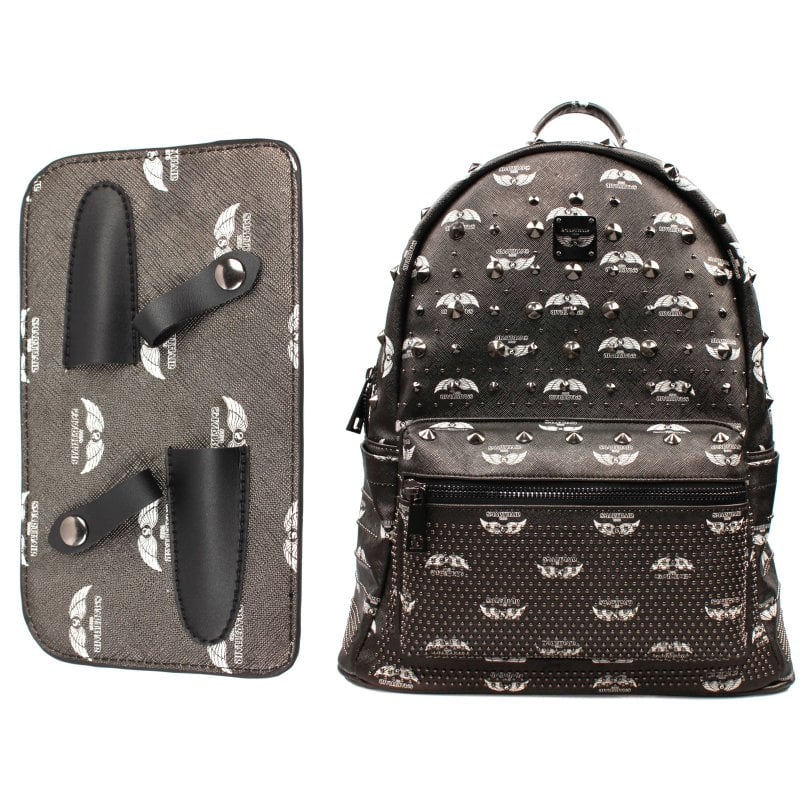 Scissor Bag Shoulder Rucksack with Pattern, Rivets & Scissor Pouch, Black, Empty