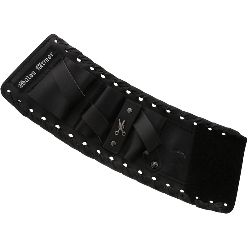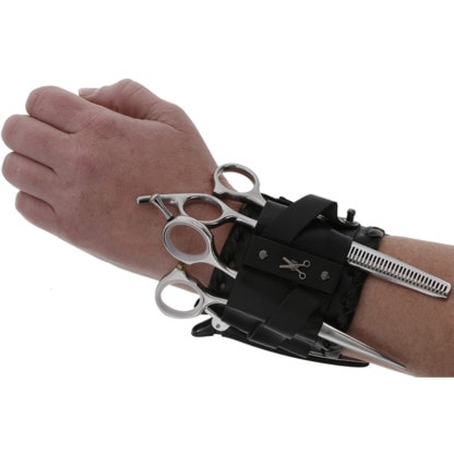 Powerhouse Cuff Wide 8cm with gunmetal shear Armorizer®. Strap closes using Hook & Loop and features magnets to hold tools and a smooth, genuine leather shear strap to create a classic look. Unique strap configuration holds scissors, bobby pins, clips, make-up brushes, nail tools and combs or wear it on its own. Soft, durable and lightweight fit. Tools not included.