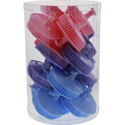 Bin of 32 scalp massager brushes. Includes blue, lavender and pink colours. Compact design, perfect for travel. Basic, proven design to massage the scalp during styling. Specially designed for deep scalp massaging and hair styling. Stimulates blood circulation and distributes natural oils for a healthy and radiant shine. Perfect for more unruly hair types.