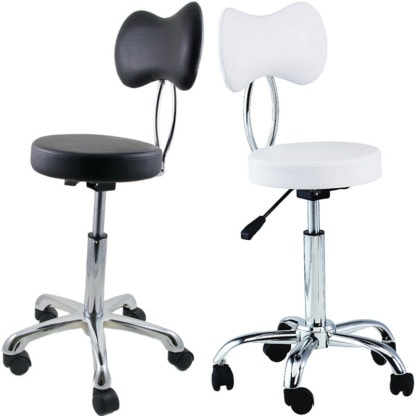 Vinyl upholstery with gas-lift for height adjustment, chromed base, on wheels.