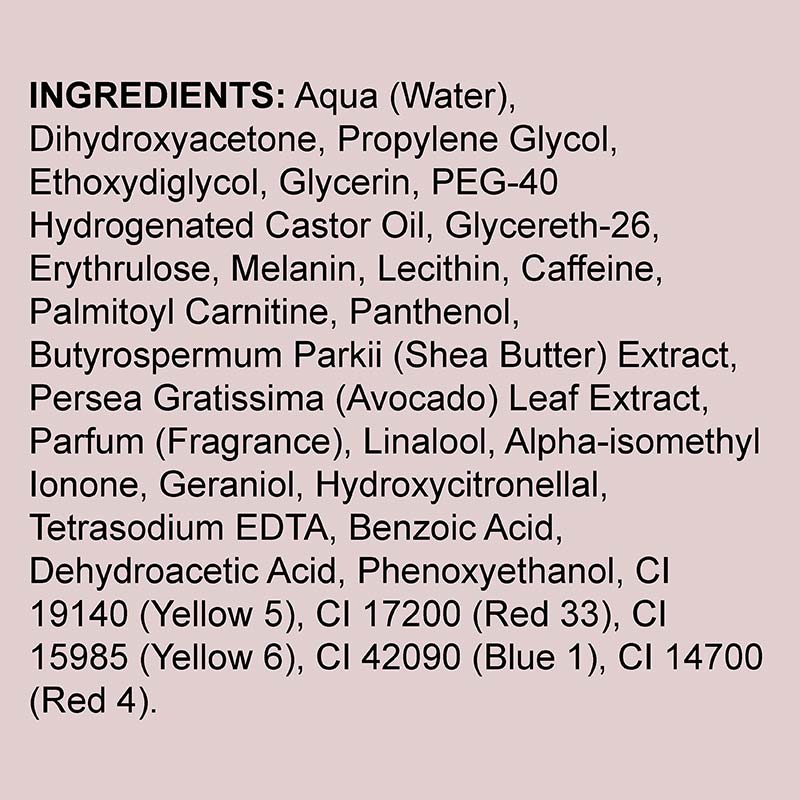 This tanning agent ensures all products impart a glowing tan for much longer. A special mix of ingredients provide a natural, water-resistant tan.