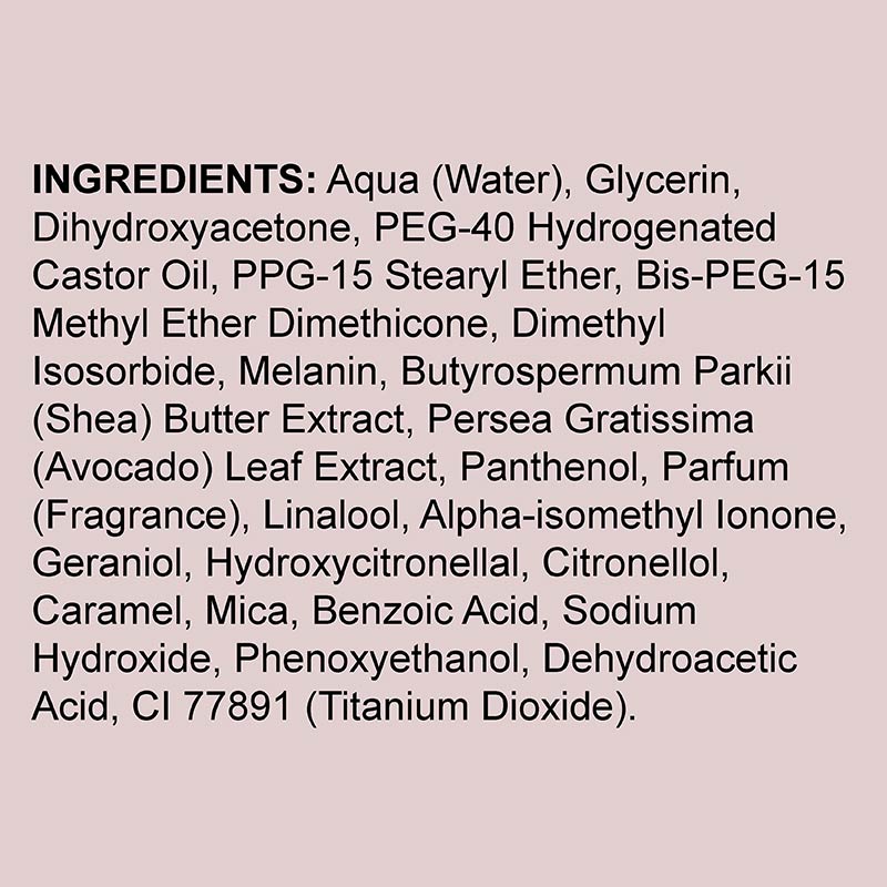 This tanning agent ensures all products impart a glowing tan for much longer. A special mix of ingredients provide a natural, water-resistant tan.