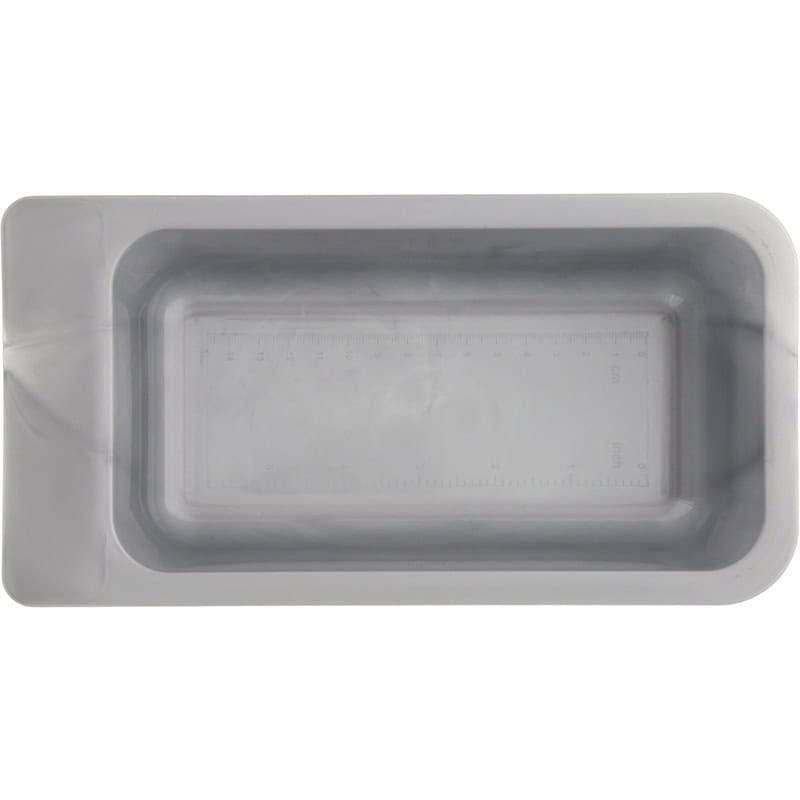 Extra-wide, rectangular tint bowl with non-slip rubber base. With a maximum capacity of 800ml, it is ideal for services that require a lot of mixed formulas for the client. Measurements on the side for ml and oz.