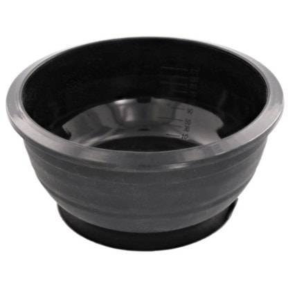 Collapsible silicone design for space saving and suctions onto surface. Includes volume markings. Ideal for travel with its collapsible design.