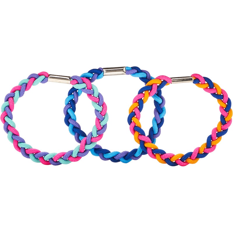 • 3 x Multicolored Hair Band Holders – woven, stretchy bands that clamp together to hold styles in place, perfect for any back-to-school look