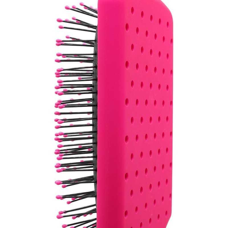 WetBrush Pro models are identifiable by their thicker, sturdier silhouette, grooved lines at base of rubberised handle for excellent grip, and finger cut-outs at the base of brush cushion for diverse handle positions.