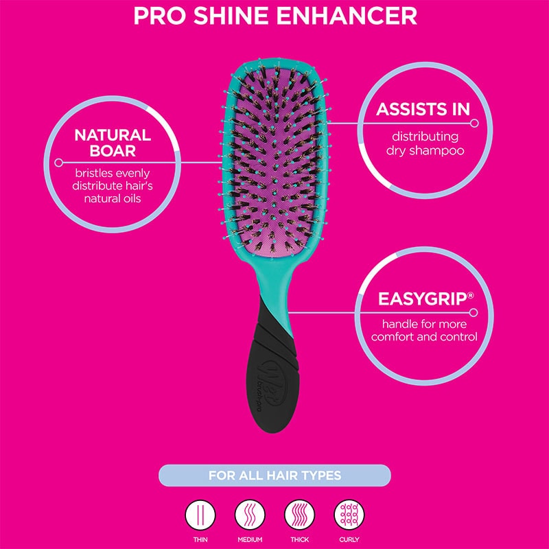 The newest shine enhancing technology from WetBrush that transforms limp, flat and dull hair. Using a combination of 100% natural boar and WetBrush’s famous IntelliFlex™ bristles, this brush is able to revive hair and transform it to radiant, healthy, glowing locks full of body, flare and volume. An ideal addition to those on-the-go who need a brush to deliver instant results that last throughout a busy day schedule.